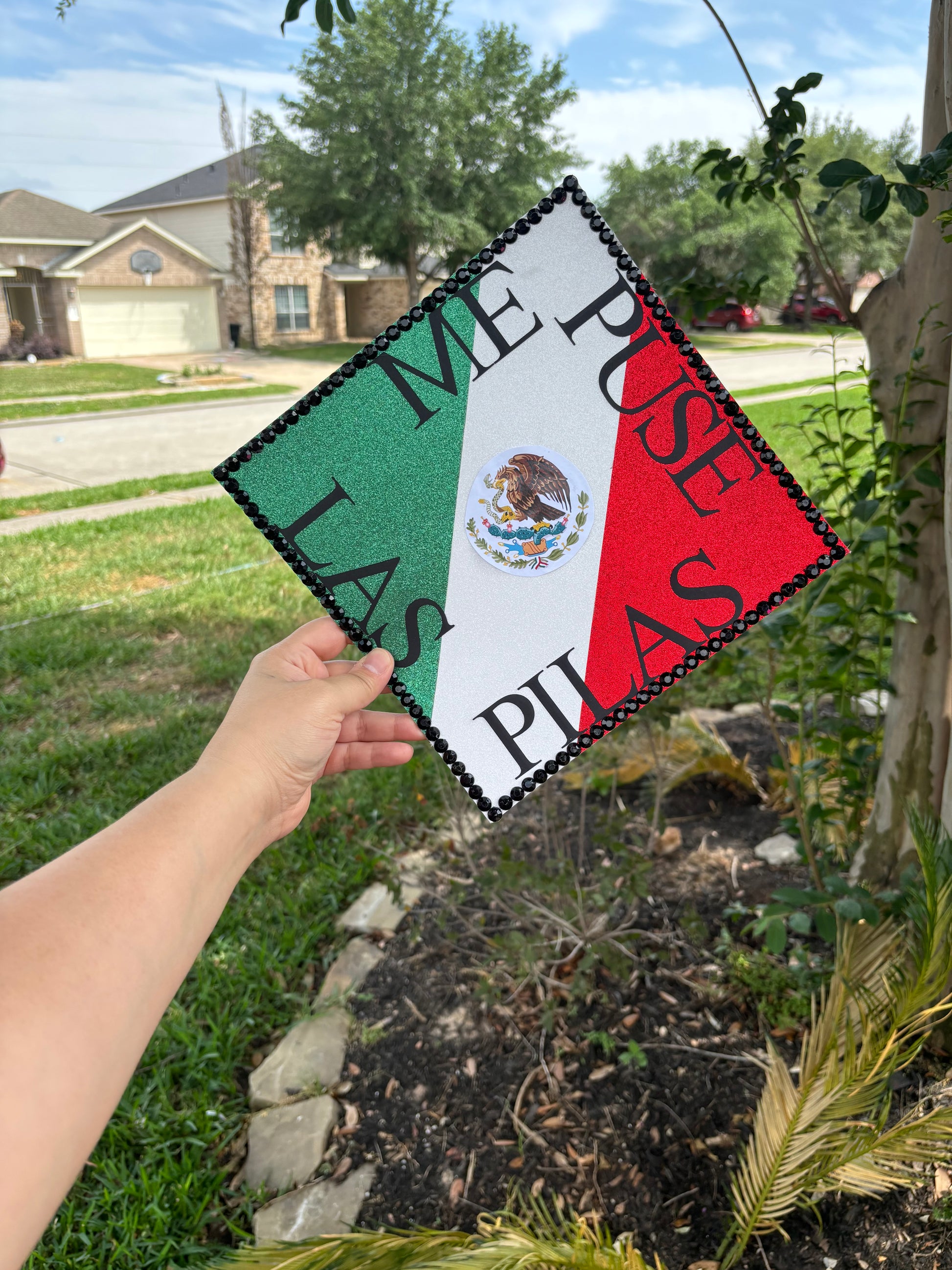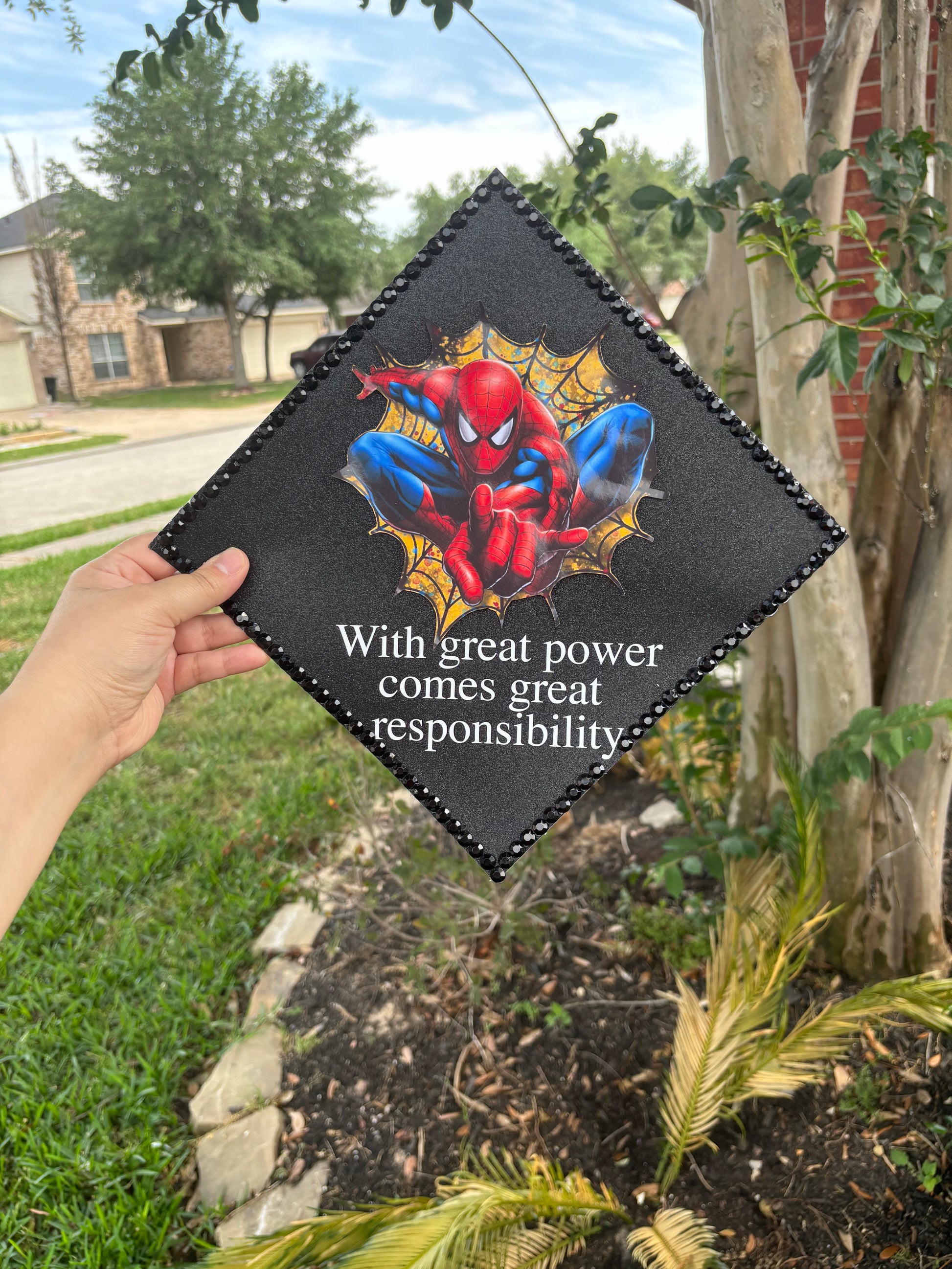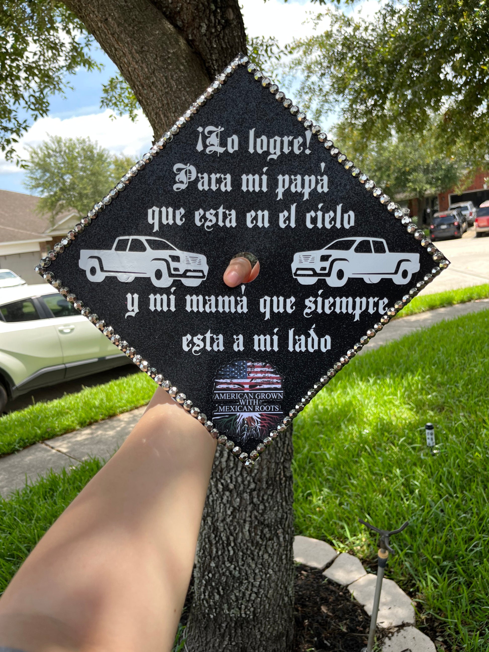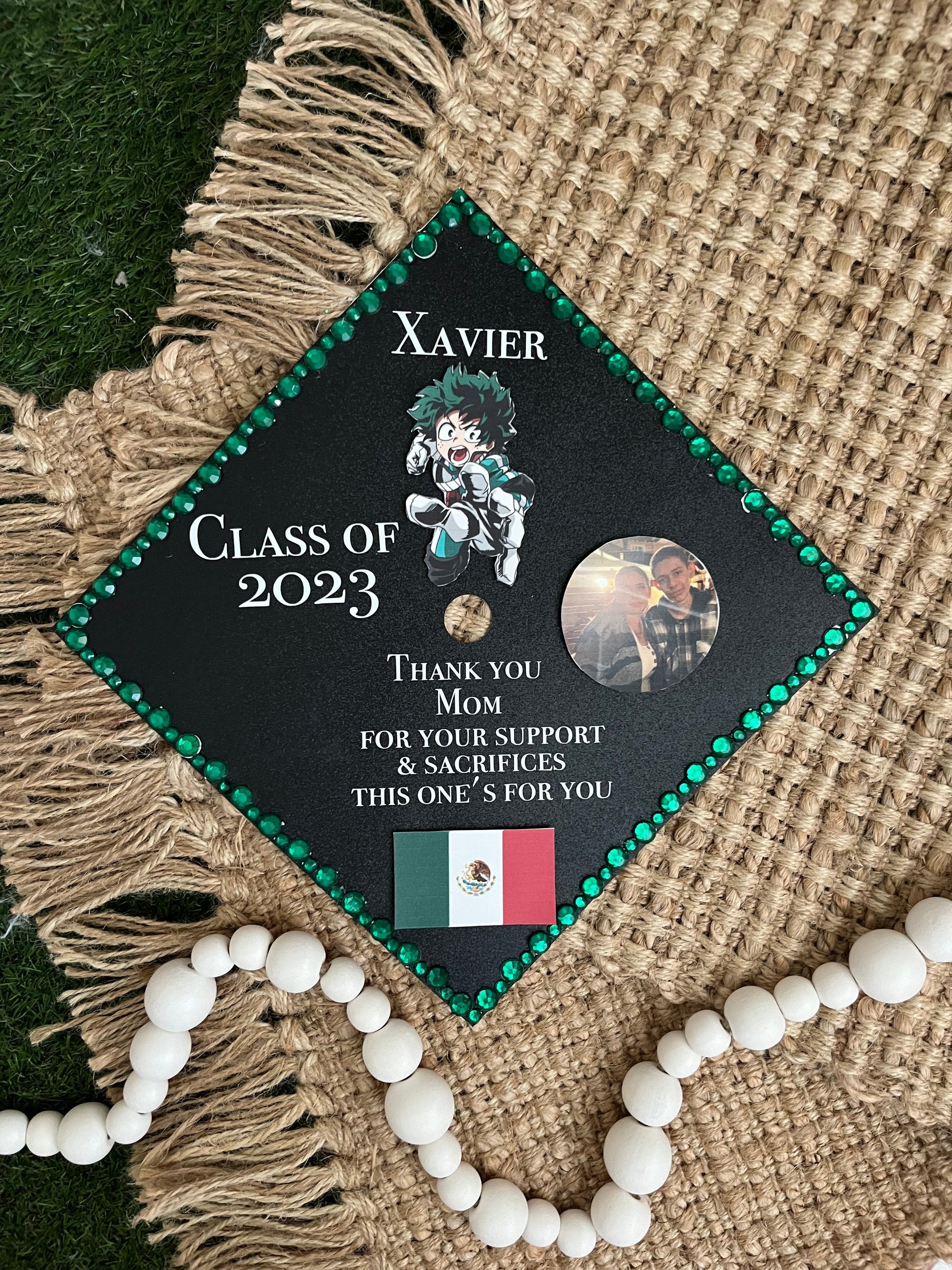 Size of grad cap topper is 9.5x9.5 with a centered hole