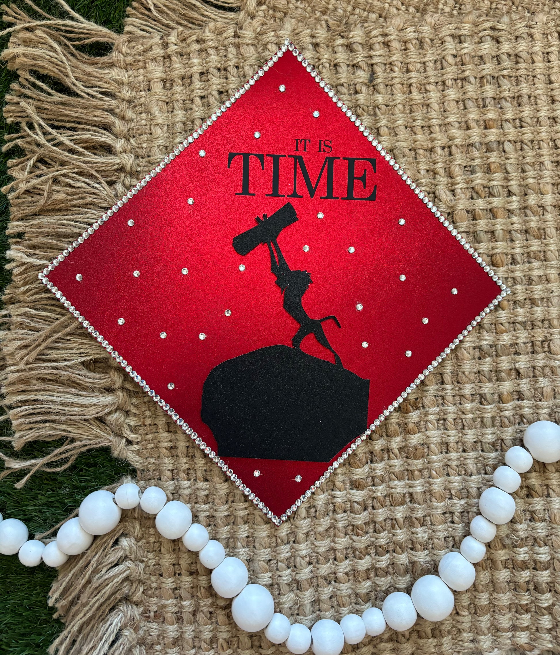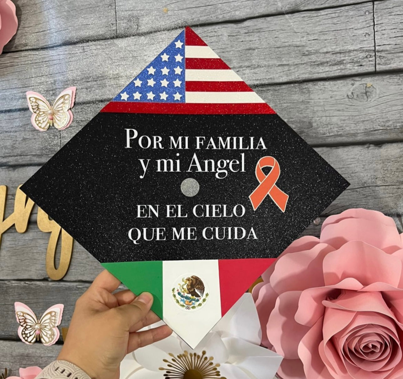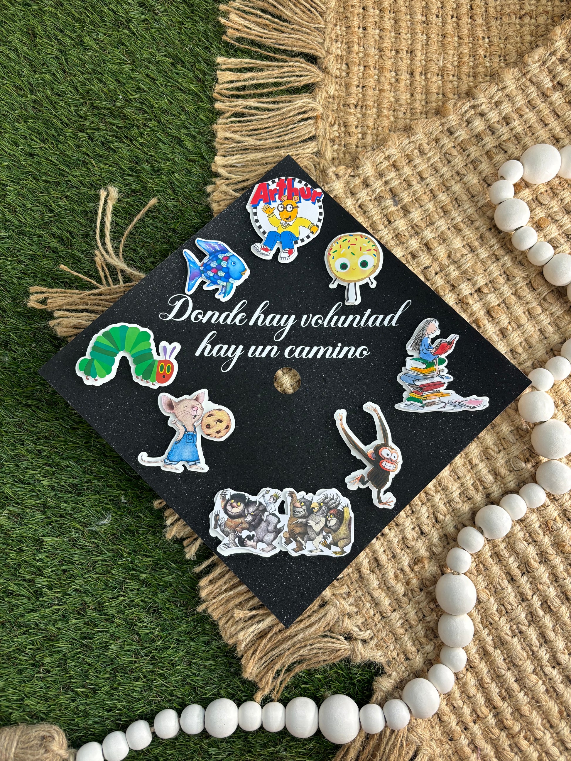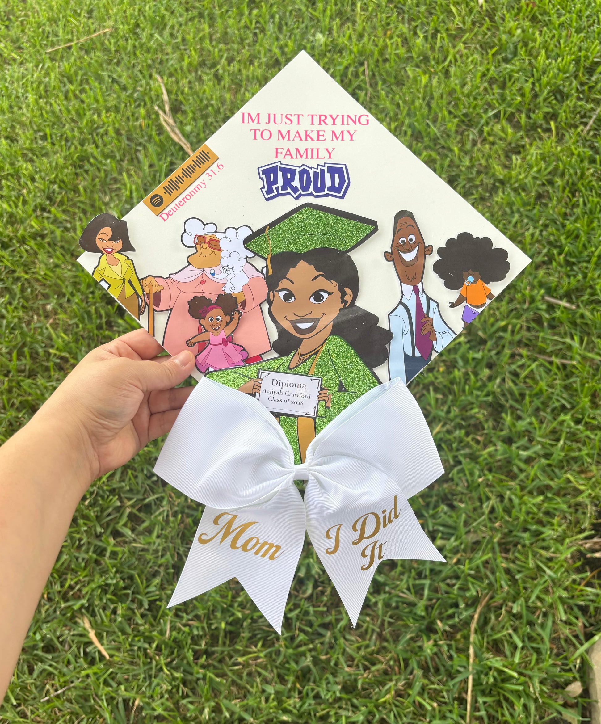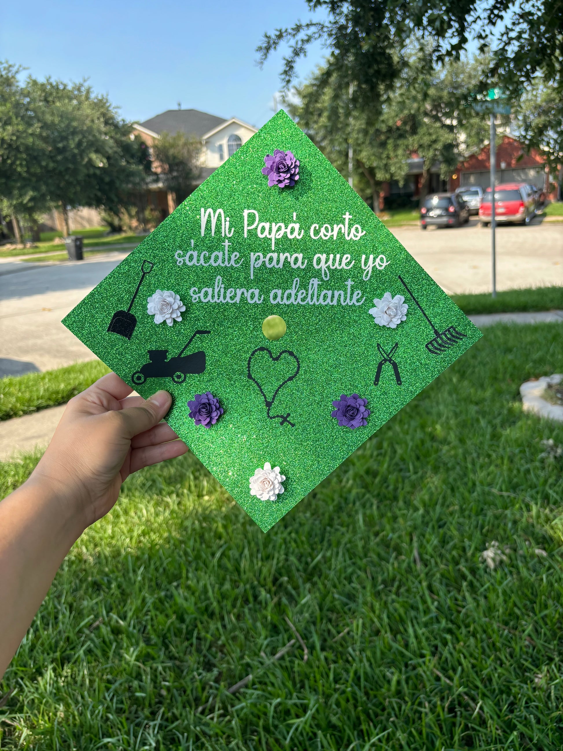Size of grad cap topper is 9.5x9.5 with a centered hole